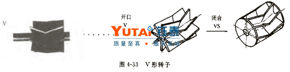(2)V形转子。叶片制成人字形,一般适用于颗粒输送,是有效减少转子和机壳之间卡料的措施之一,分为V(开口)形,VS(闭合)形。